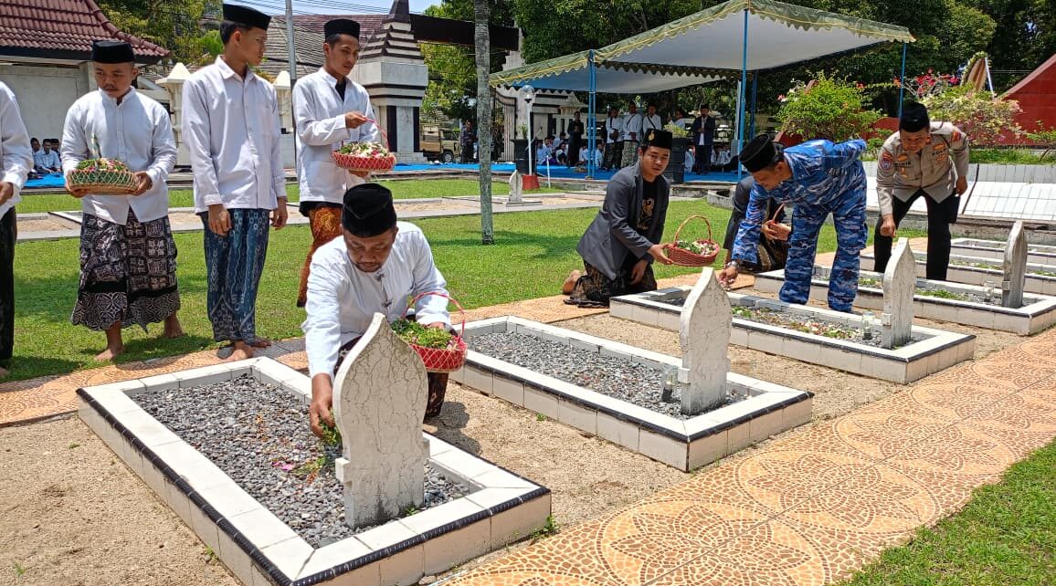 Muniirul Ichwan, selaku Kepala Badan Kesatuan Bangsa dan Politik (Bakesbangpol) Kabupaten Pacitan beserta stockholder lainnya terlihat menaburkan bunga tanda penghormatan.